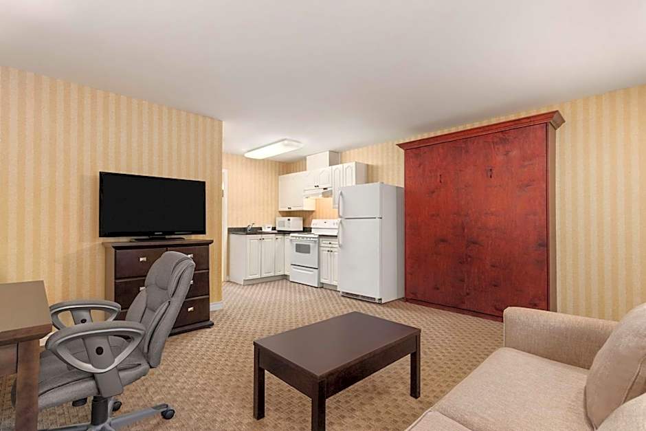 1 King Bed and 1 Murphy Bed Suite Non-Smoking is 484 square feet and includes a king-size bed 150-183 width plus satellite tv , hairdryer, and tea and coffee making facilities .